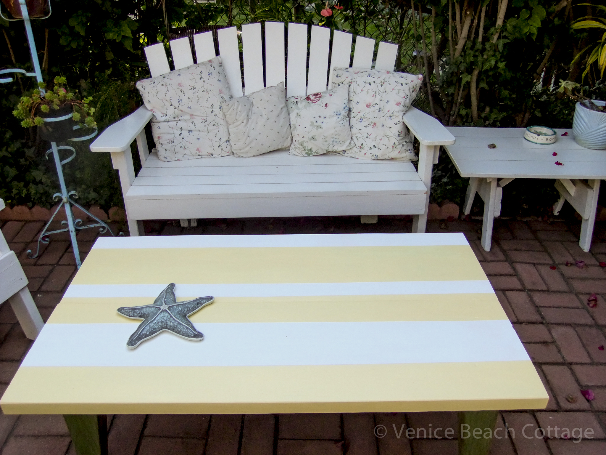 4 Yellow striped table for patio