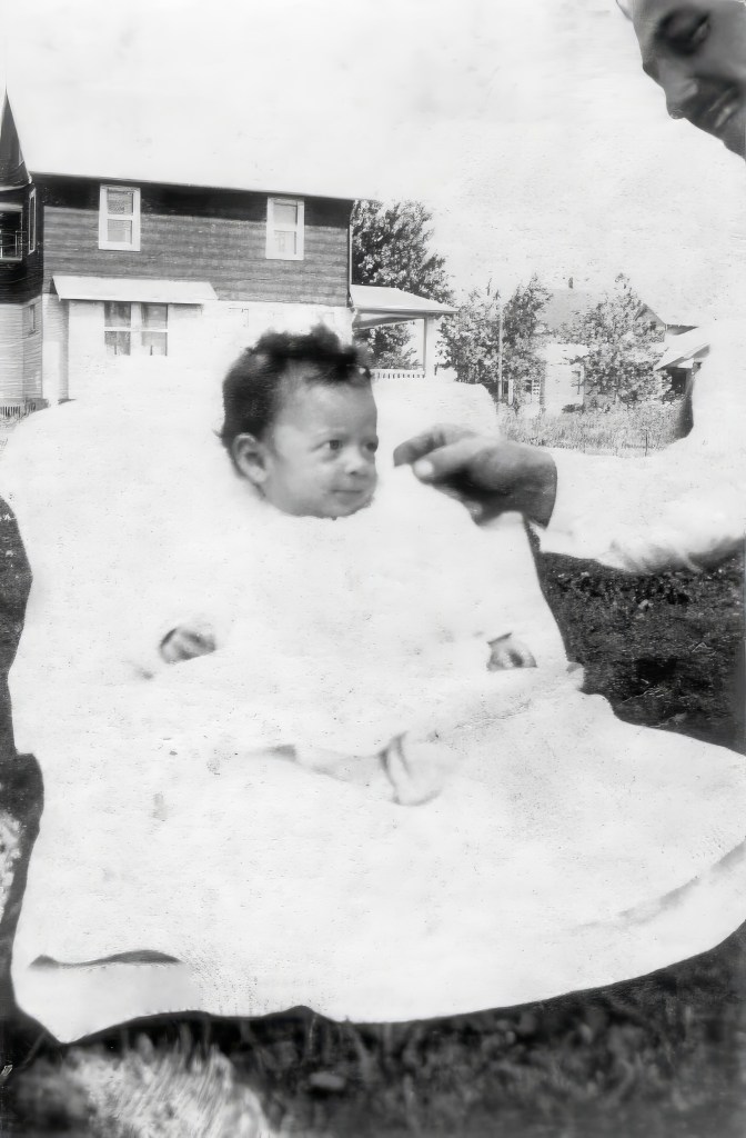 The earliest photo I found was probably taken by her mother Julia of Laura looking at her daddy Charles Jones in her birthplace of Poe, Ohio.